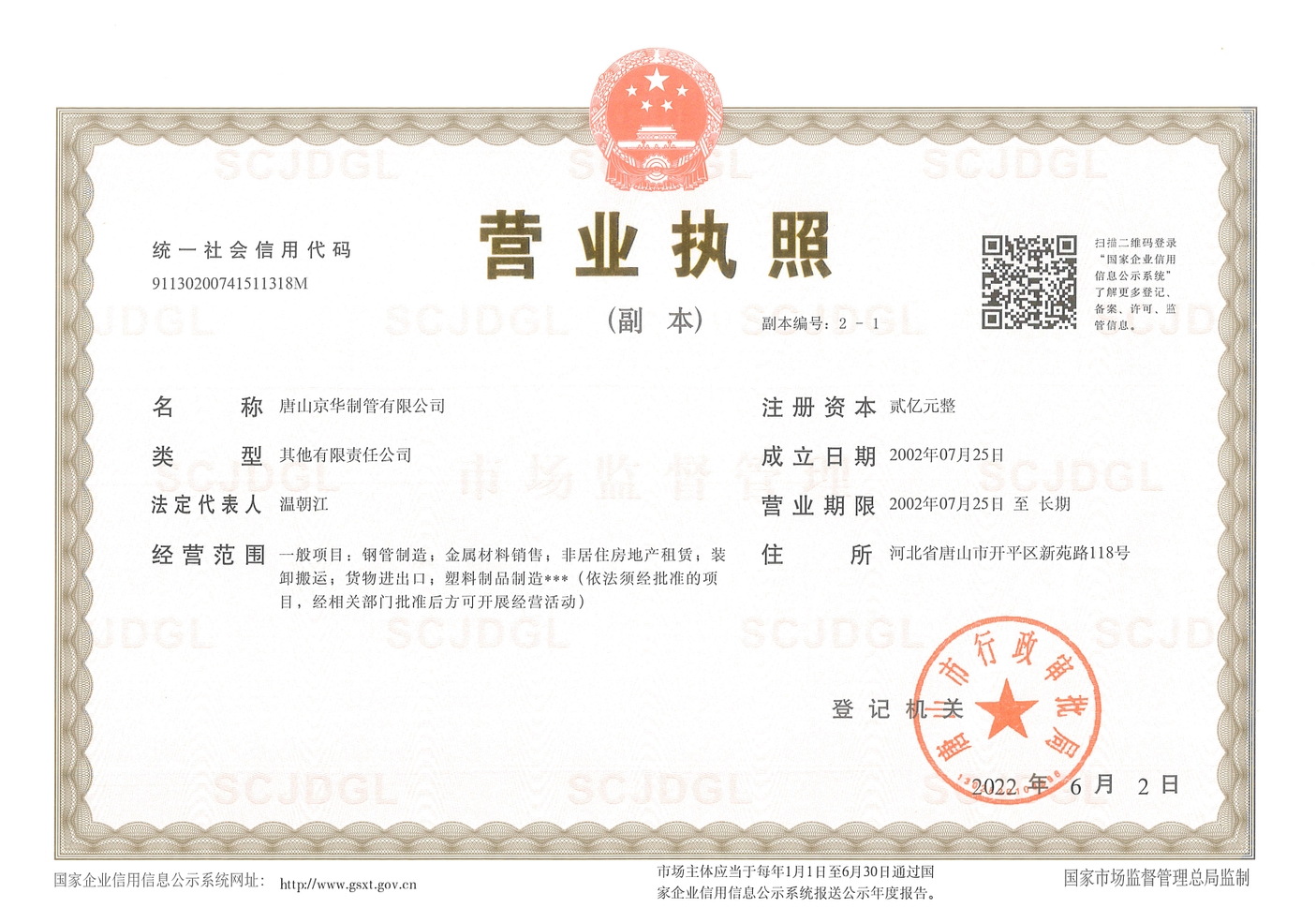 乐竞体育(中国)官方网站始建于2001年,隶属京华日钢管业有限公司。位于河北唐山开平高新技术产业开发区,是国家高新技术企业、全国优秀企业、河北省科技型企业,全国知名大型焊接钢管制造企业。
