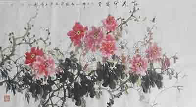 10月7日,当代著名画家王玉伟到访乐竞体育(中国)官方网站,受到公司领导热情接待。图为王玉伟即兴创作《花开富贵》。(办公室 冯继宏)